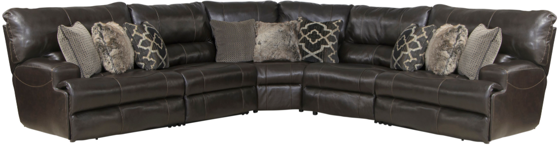 The Catnapper® Como 5-Piece Chocolate curved Power Reclining Sectional features power reclining seats for customized comfort. Its spacious L-shape design provides ample seating, making it ideal for large rooms. This sectional offers an upgraded experience for relaxation with easy-to-use power recline functionality.Read More