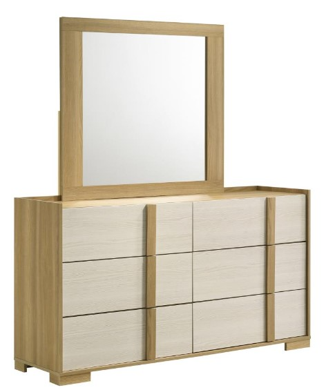 The Coaster® Hyland Natural/White Dresser and Mirror set combines modern Italian-inspired design with functional storage. The dresser features six spacious drawers with smooth metal glides, providing ample space for clothing and accessories.Read More