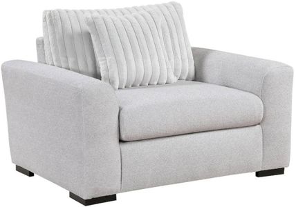 Add a touch of modern texture and comfort to your living space with this two-tone gray armchair, featuring a unique blend of textured microfiber and cozy corduroy fabrics. Built with a sturdy plywood frame, high-density foam padding over pocket coils, and reversible cushions, this armchair offers both durability and exceptional comfort.Read More