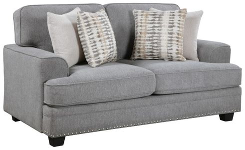 With a transitional design that is a complement to your home’s living room, the Bradford Collection utilizes classic lines, refined texture, and traditional accenting to achieve a universally appealing look. The love seat is covered in gray chenille fabric upholstery. Nail head trim accents the base rails, while profile-defining welting provides a tailored finish.Read More