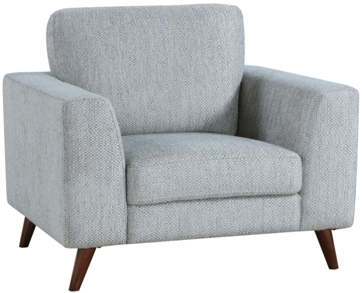 Add a touch of mid-century modern charm and versatile comfort to your living space with this striking side chair. Featuring a reversible back cushion, the soft, textured blue-gray fabric upholstery complements a variety of décor styles, while the faux wood brown finish legs provide a warm and stylish foundation.Read More