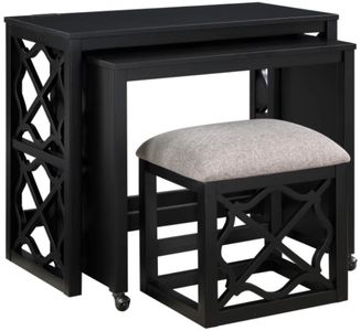 Maximize your workspace with this versatile and stylish 3-piece nesting desk set. Crafted from birch veneer, solid wood, and engineered wood with a sleek black finish, this set includes a large desk with two built-in USB charging ports for convenient device charging, a smaller rolling desk with casters for easy mobility, and a matching padded stool.Read More