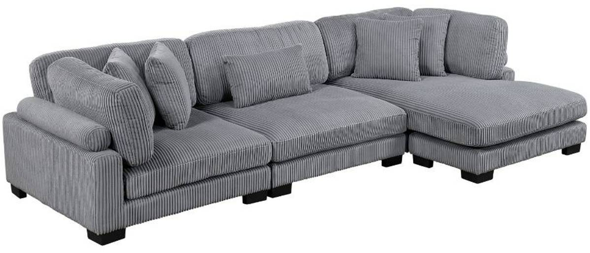 Configurable to your available space, the Traverse collection allows for the addition and detachment of pieces for a customized seating experience. The 3-piece sectional consists of one corner unit paired with one armless chair and a chaise. Gray corduroy fabric upholstery creates a plush expanse for a soft touch experience.Read More