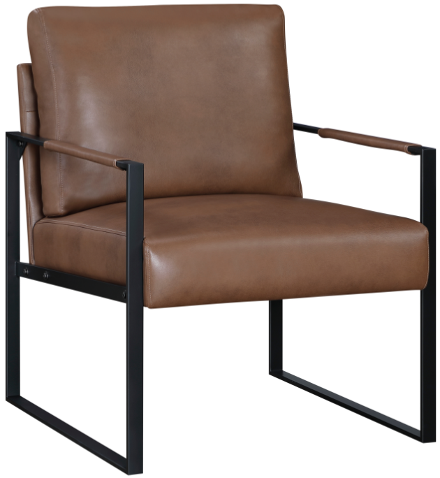 The rich brown faux leather offers a luxurious look and feel, while being easy to maintain, making it ideal for busy households. Whether used in the living room, office, or bedroom, this accent chair complements a wide range of décor styles, from industrial to modern and mid-century.