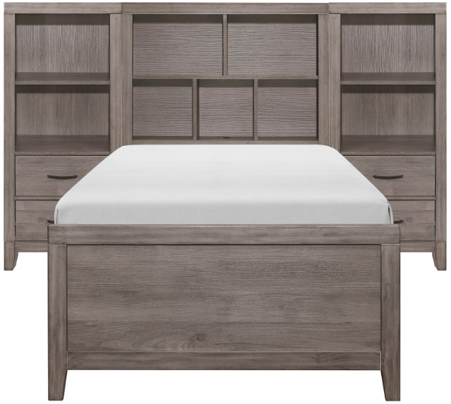 Industrial design is subtly used to achieve a cool look for your bedroom in the Woodrow Collection. Dark metal hardware and corner banding with rivet look lend to the casual look of this bedroom group. Melamine laminate features a weathered-wood look that furthers the intended design.Read More